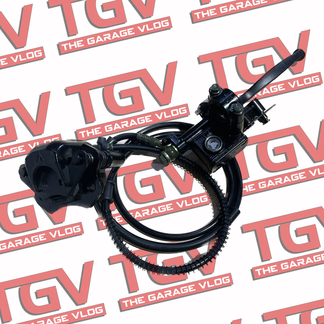Direct fit TGV Mini-Trike master brake kit including master cylinder, handle, caliper, and mounting hardware.